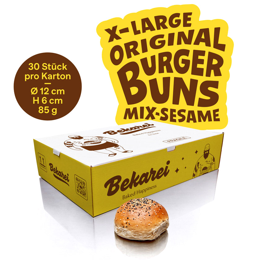 Upgrade Deine Grillparty mit unseren Klassikern, die alles andere als Standard sind! Unsere Mixed Sesame XL Burger Brötchen in der 30er Box sind beliebt bei Burger-Enthusiasten in ganz Deutschland und Europa für Ihren einzigartigen Stil & Geschmack.